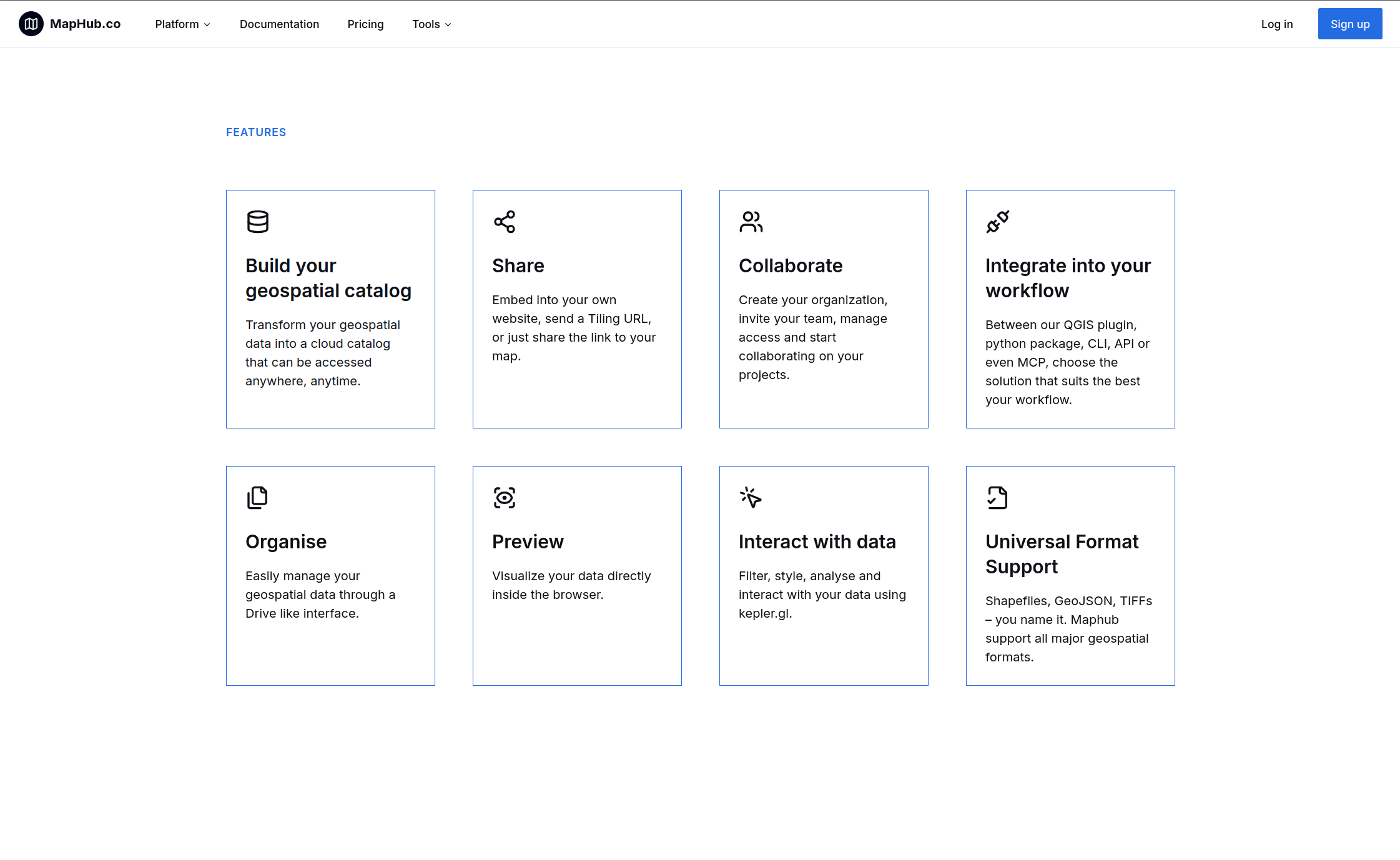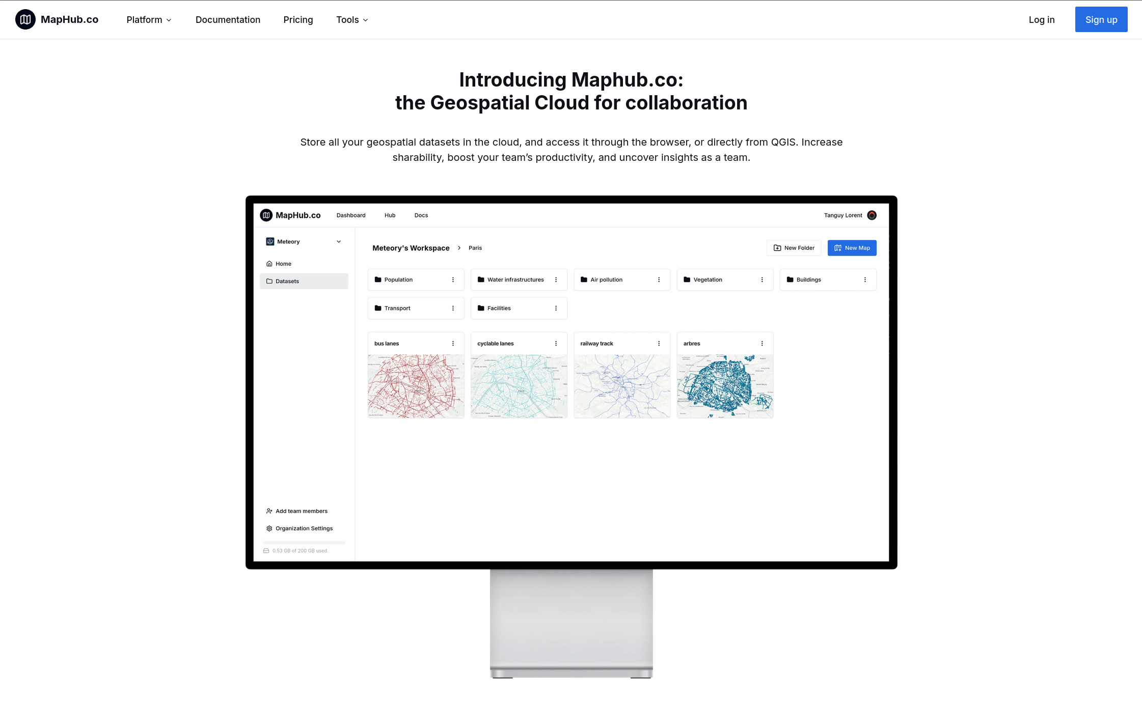Cloud géospatiale permettant de facilement héberger, consulter et partager leurs données géospatiales. Maphub fait la jonction entre les professionnels SIG produisant la donnée, et les personnes non-SIG ayant besoin de la consulter, en transformant les fichiers géospatiaux en maps interactives, directement consultables en ligne.
