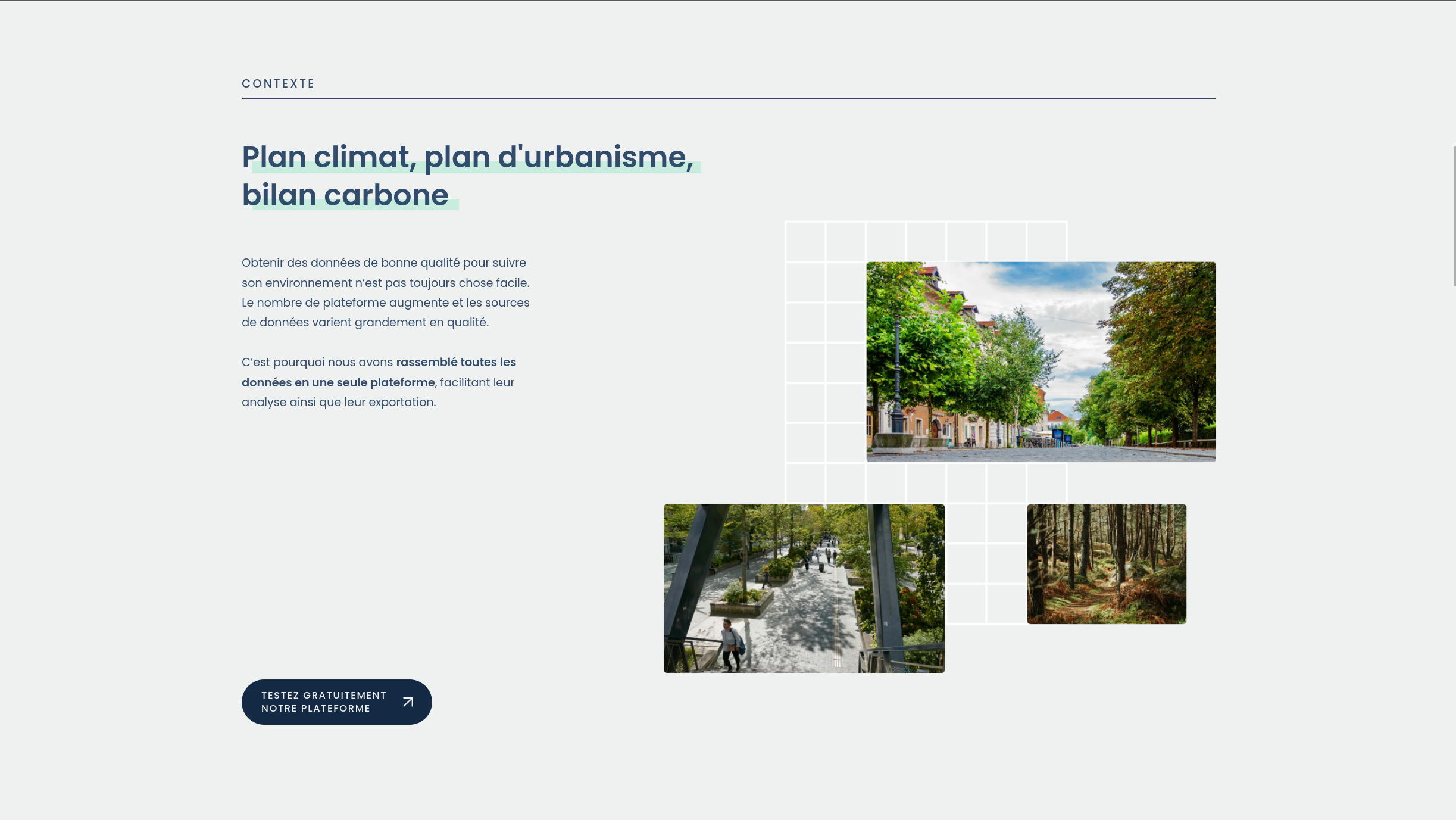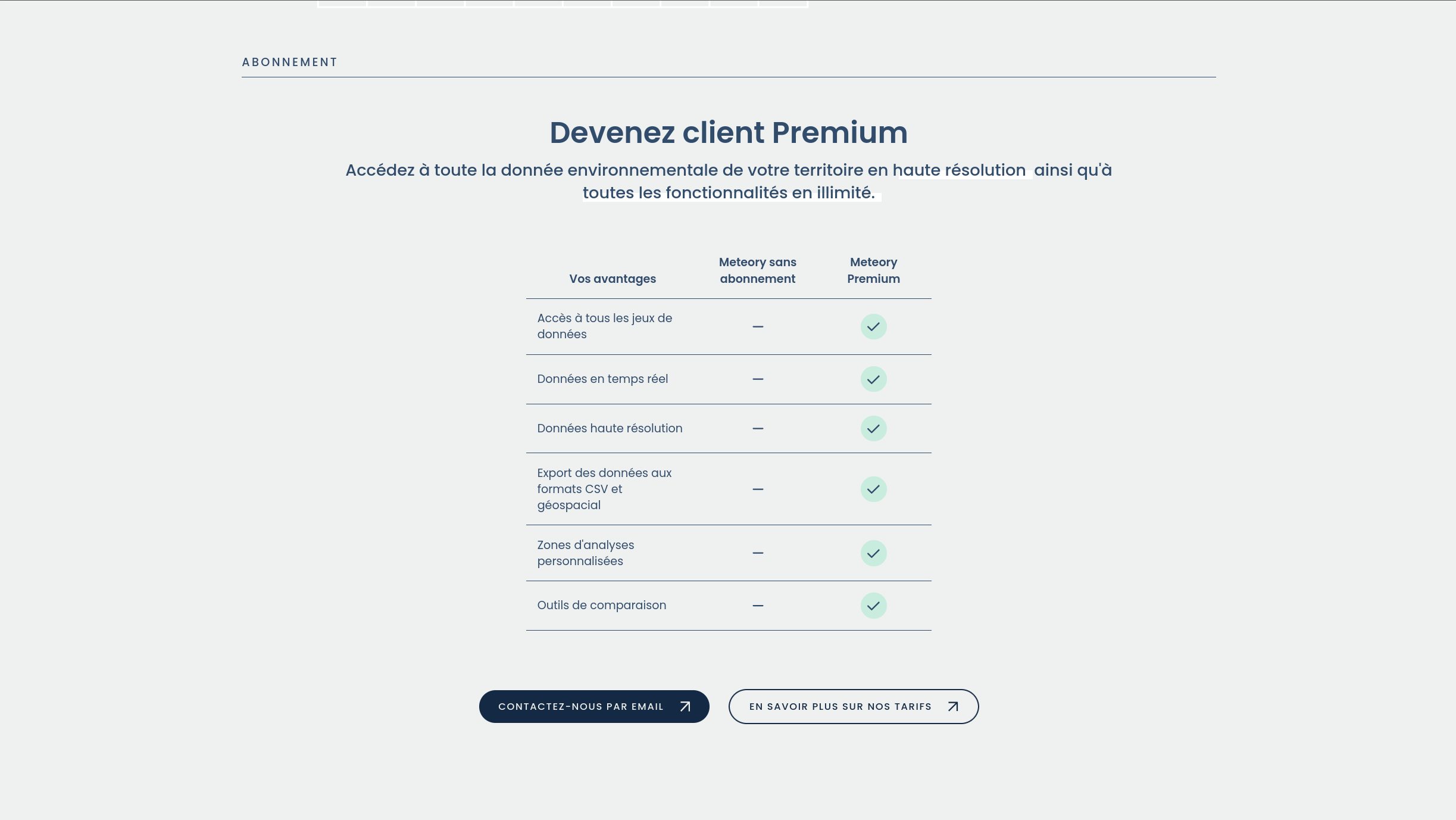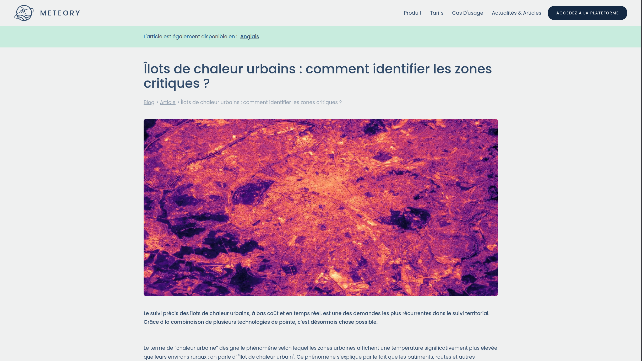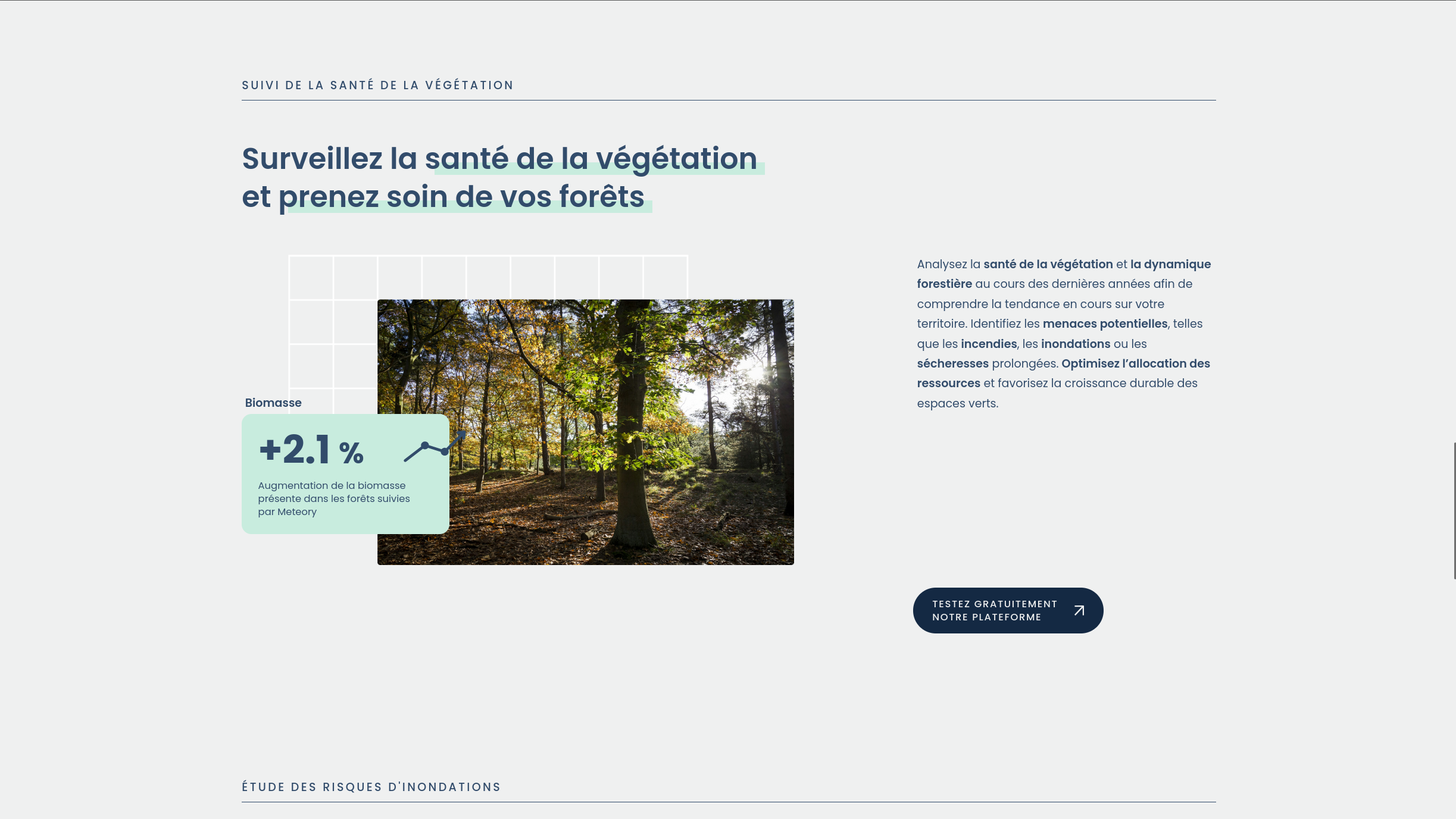 Site vitrine de Meteory présentant la plateforme environnementale, ainsi que les services proposés par la startup.